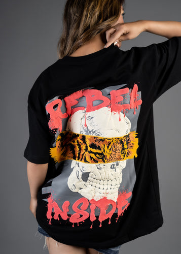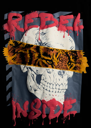 Unleash your inner wild side with the Rebel Inside Tee. Featuring a fierce skull-tiger hybrid design with red dripping typography, this piece blends rebellion and style with a fearless street-ready aesthetic.